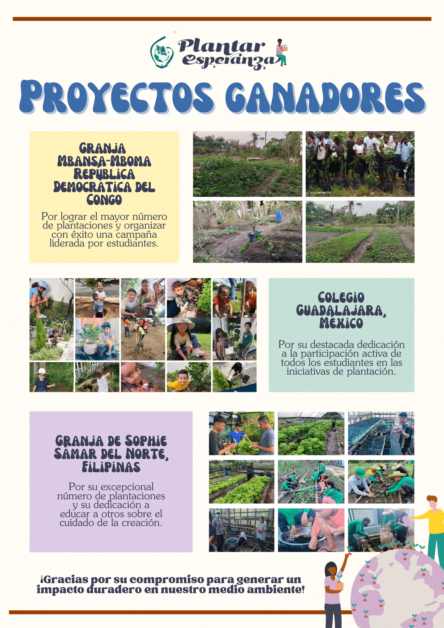 En reconocimiento a su excepcional dedicación y compromiso con el cuidado de nuestra casa común, nos enorgullece honrar estos tres proyectos destacados:
