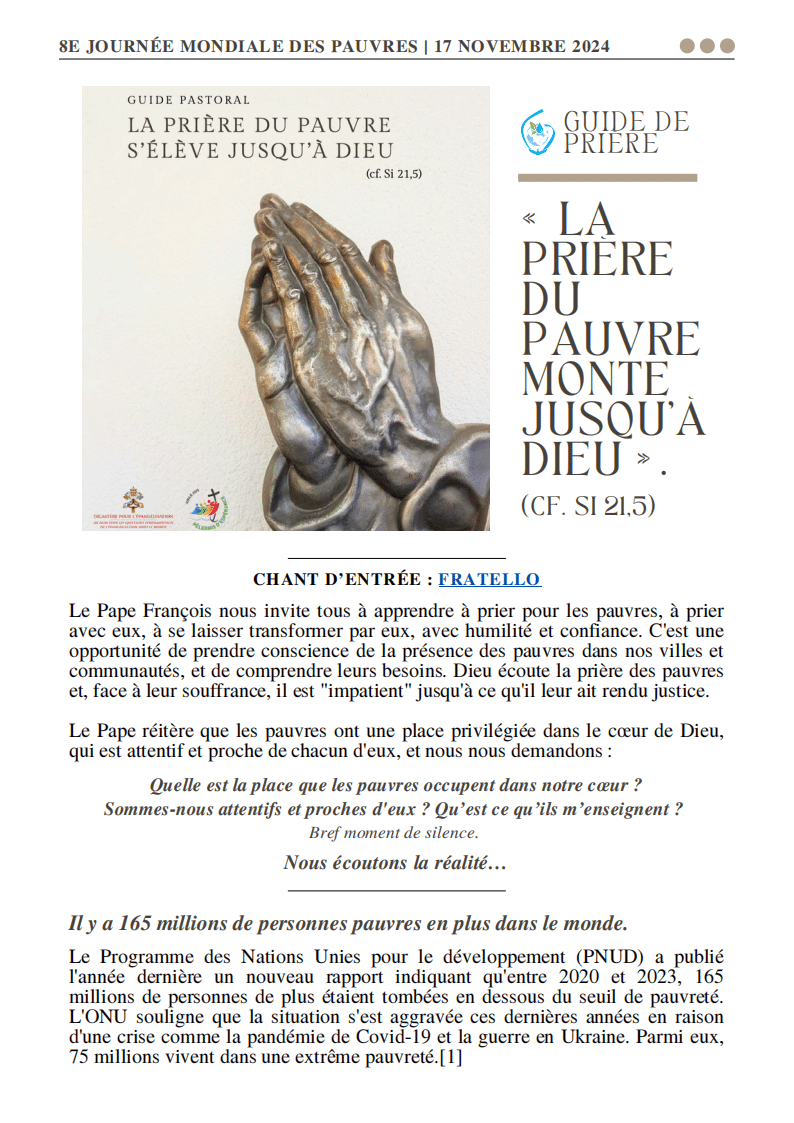 Guide de prière JPIC – VIIIe Journée mondiale des pauvres