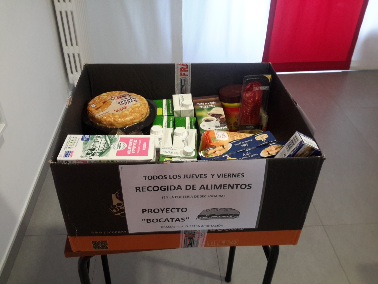Food Bank (Proyecto Bocatas - Sandwich Project): weekly collection of food to be given to the volunteers of the Proyecto Bocatas that will distribute food among homeless people (Pamplona School)