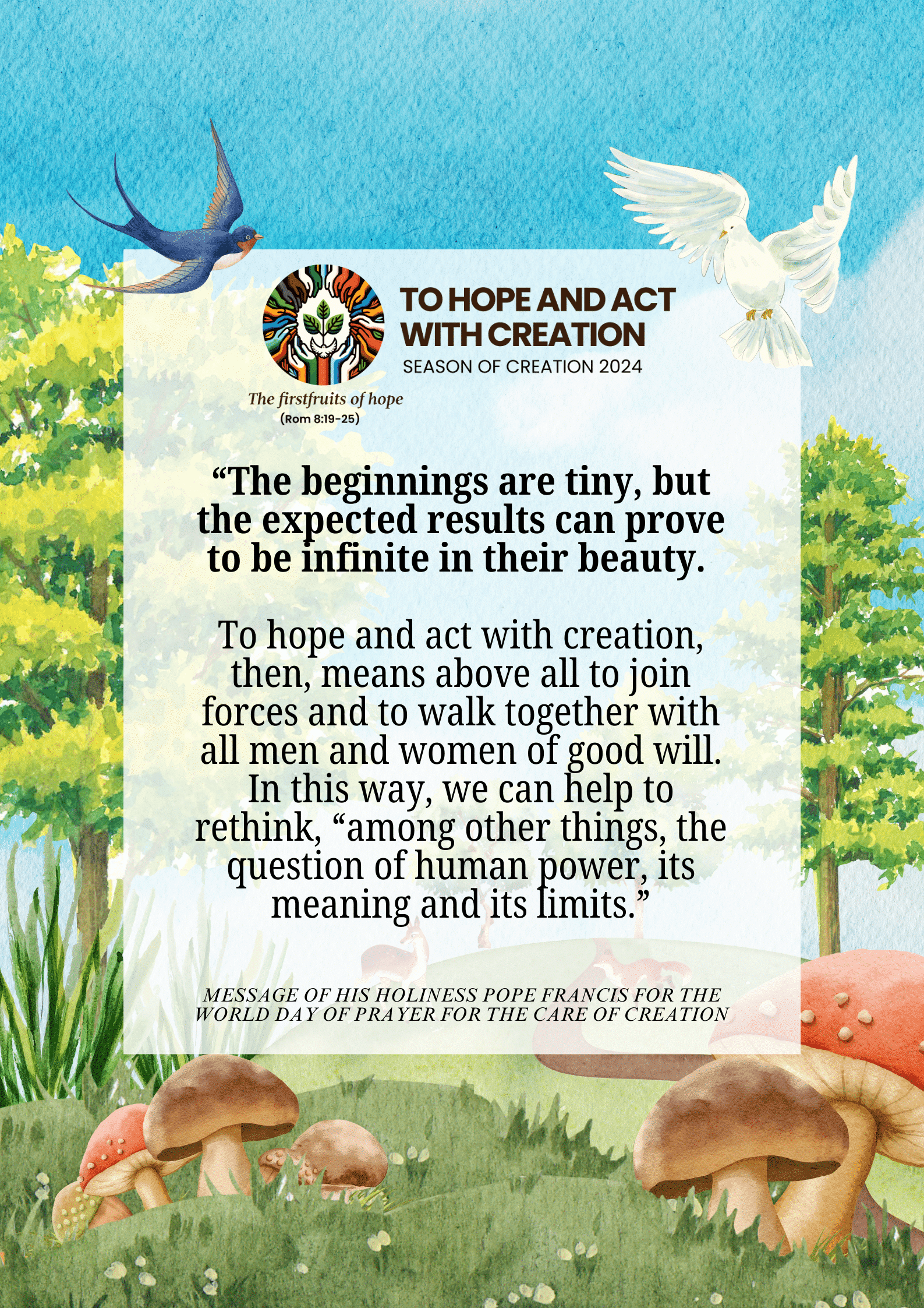The theme for Season of Creation this year is To hope and act with Creation, and the symbol is The firstfruits of hope, inspired by Romans 8:19-25