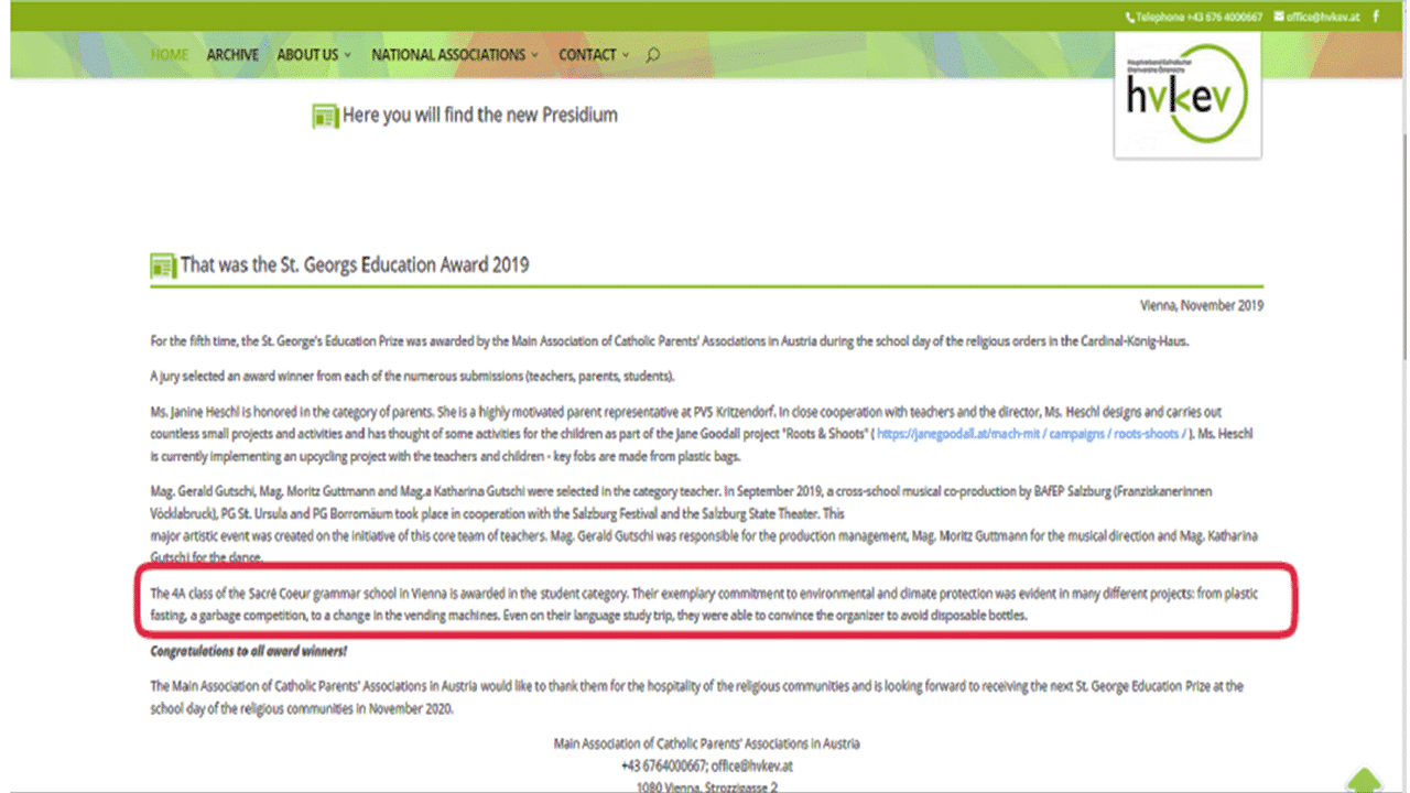 In line with the UN Sustainable Goals, Laudato Si’ and Imperative 3, “Care of Our Common Home,” of Being Artisans of Hope, the School of the Sacred Heart in Vienna has, since 2018, included extra curriculum activities that “commit to reflection, critical analysis and action in order to effect changes in the root causes and system that endanger our planet …” (Being Artisans of Hope, pp. 16-17)